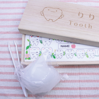 抜けた乳歯を収めた日付を記入できるプレートです。乳歯が取れた日を付けておくことで大切な思い出として記念日を残すことが出来ます。